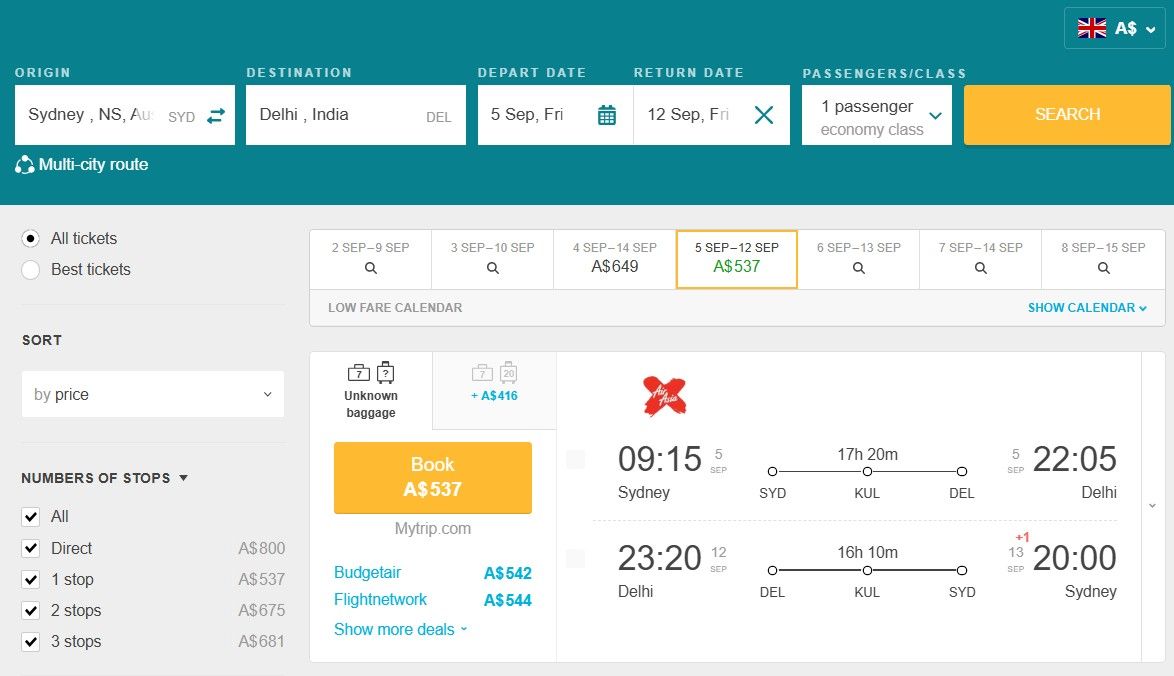 Currently, you can book your round-trip ticket from Sydney, Australia to New Delhi, India for only A$537.