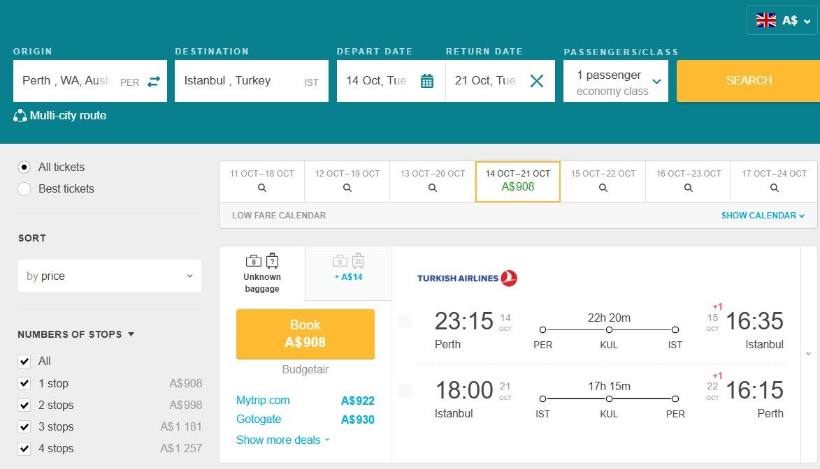 Currently, you can book your round-trip ticket from Perth, Australia to Istanbul, Turkey for only A$908.
